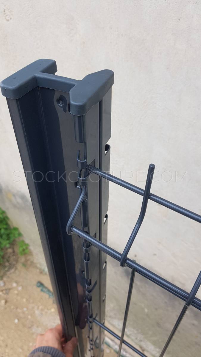 STOCKCLOTURE vous propose à la vente des poteaux à encoches à sceller pour votre clôture en panneau de grillage rigide. Le système à encoches à l'avantage de se poser rapidement en s'accrochant directement sur le dernier fil vertical du panneau en grillage rigide.